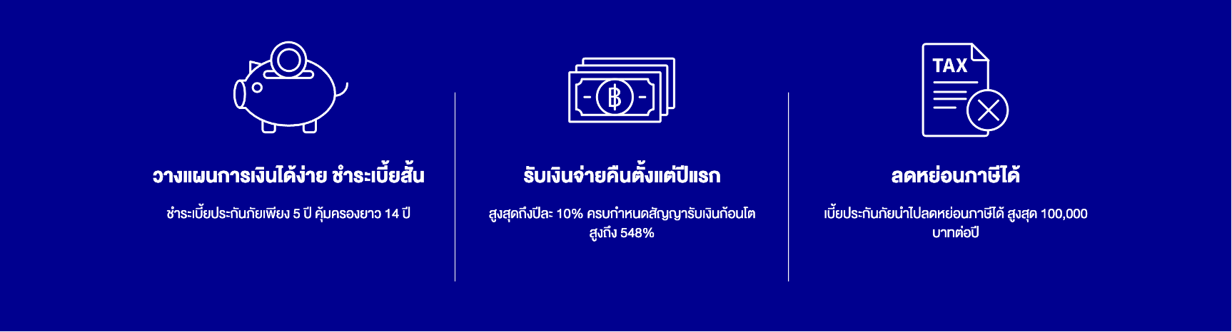 เปลี่ยนชีวิตสู่ความมั่งคั่ง ให้คุณวางแผนการเงินระยะสั้นของคุณอย่างง่ายๆ รับเงินจ่ายคืนตั้งแต่ปีแรกและให้ความคุ้มครองชีวิต