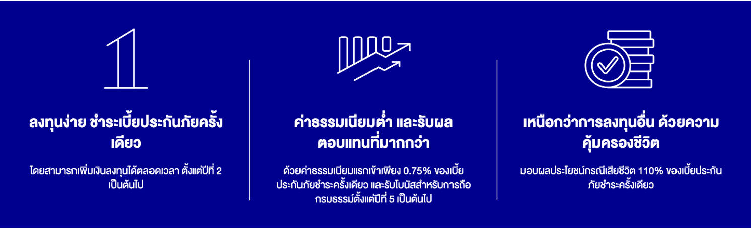 มีความคุ้มครองชีวิตและสามารถปรับเปลี่ยนความคุ้มครองชีวิตได้ โดยผลประโยชน์กรณีเสียชีวิต 110% ของเบี้ยประกันภัยชำระครั้งเดียว