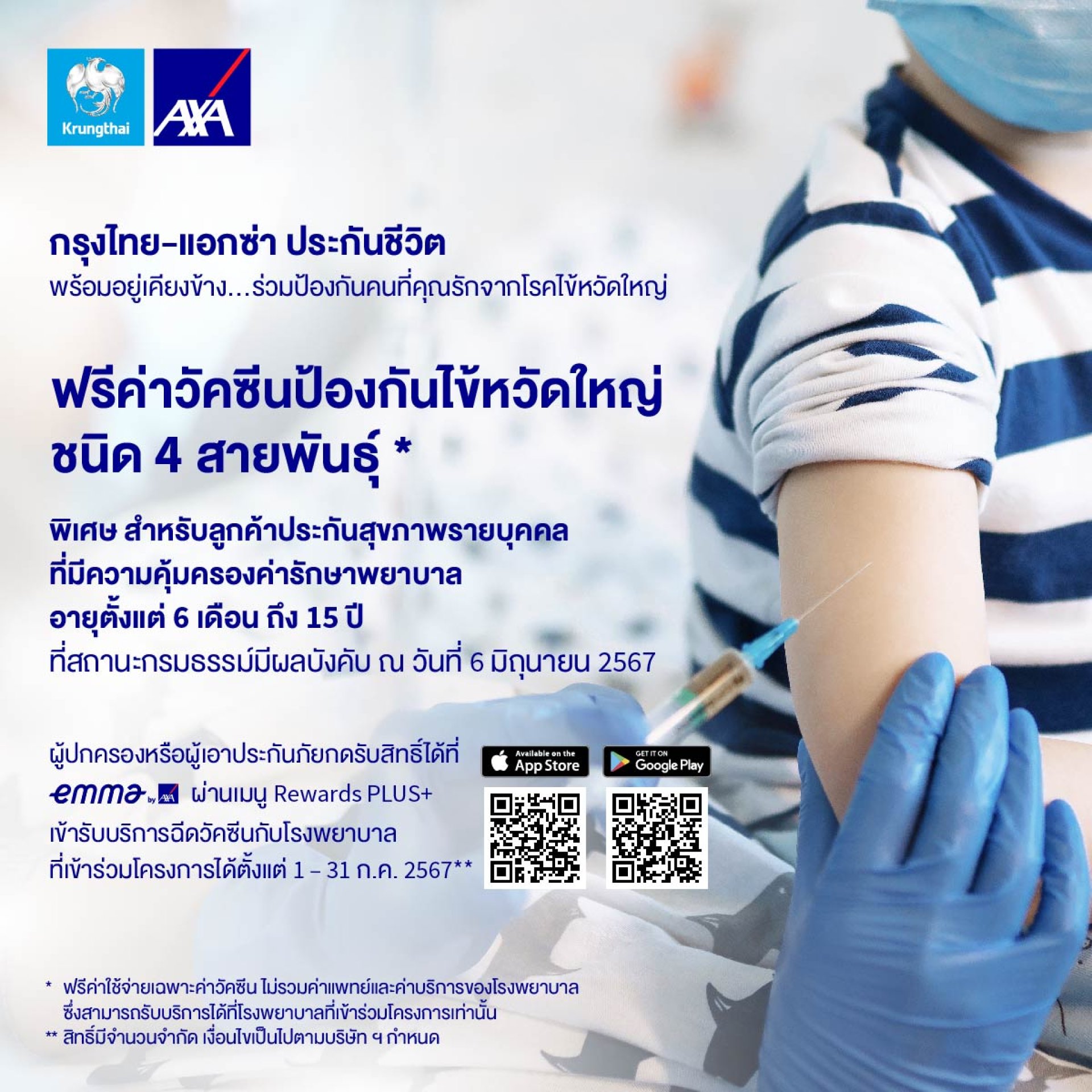 กรุงไทย-แอกซ่า ประกันชีวิต พร้อมอยู่เคียงข้าง...ร่วมป้องกันคนที่คุณรักจากโรคไข้หวัดใหญ่